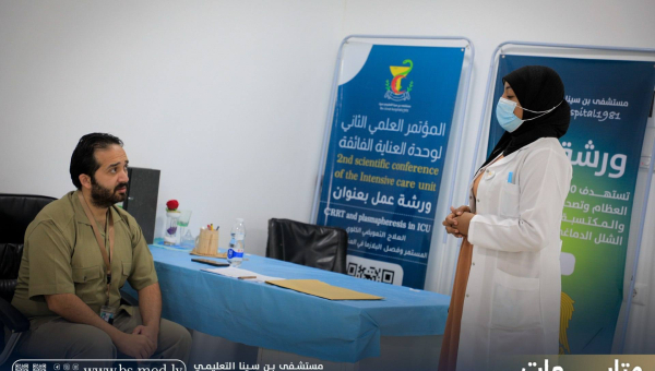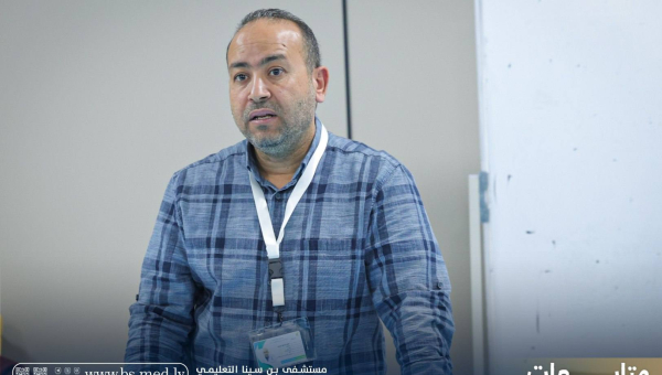 - مدير عام المستشفى الدكتور علي الجروشي بحضور المدير المساعد الدكتور جادالله درياق ورئيس اللجنة العلمية ال...