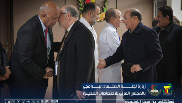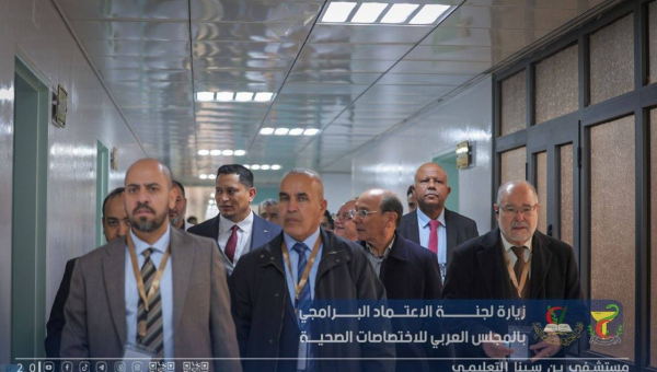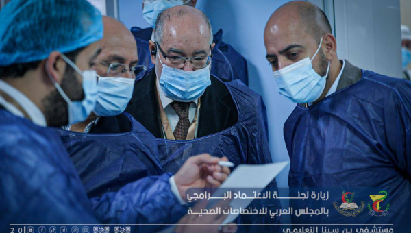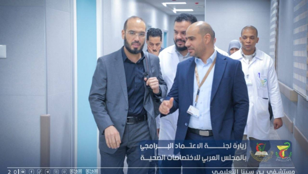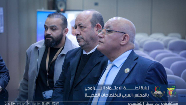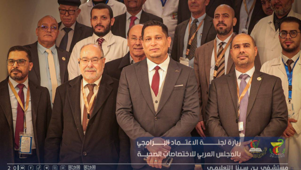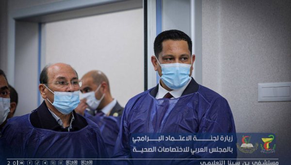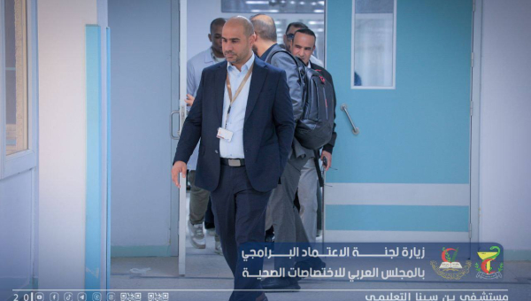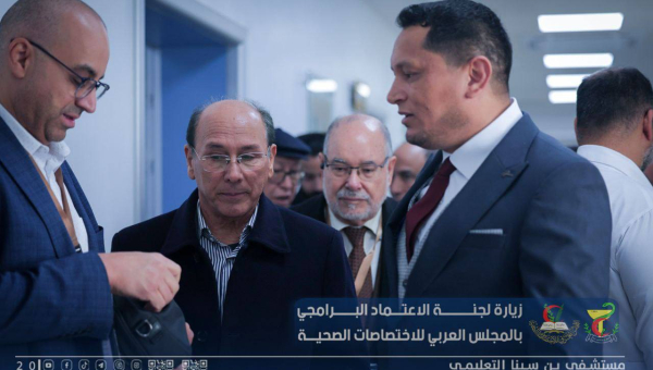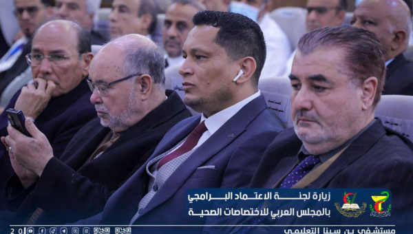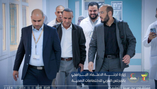 استقبال فريق الاعتماد البرامجي لتقييم المستشفى ورئيس المجلس العربي للإختصاصات الصحية بليبيا