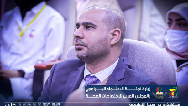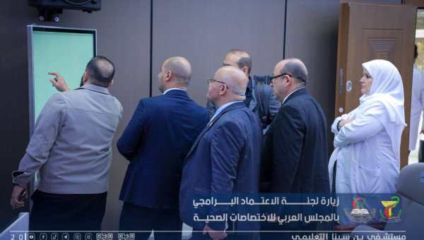 وفد المجلس العربي للاختصاصات الصحية يتابع جولته داخل أقسام المستشفى