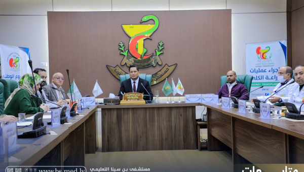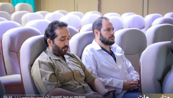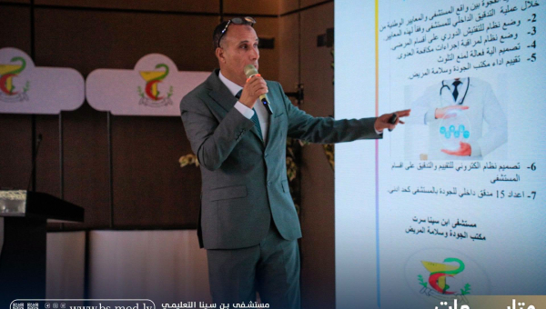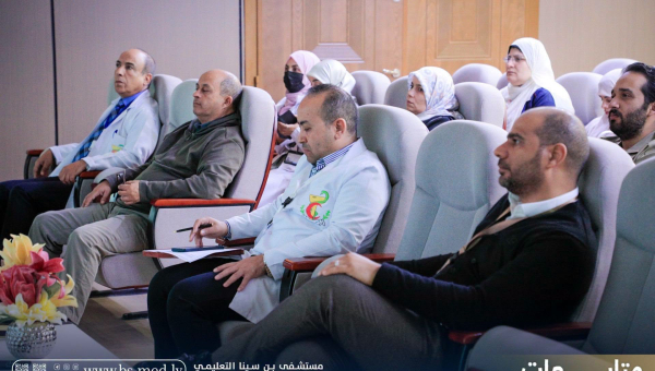 - مدير عام المستشفى الدكتور علي الجروشي بحضور المدير المساعد الدكتور جادالله درياق ورئيس اللجنة العلمية ال...